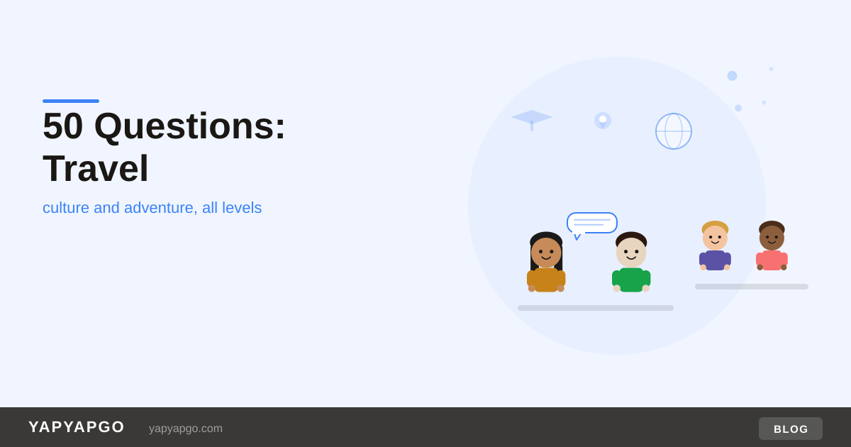 YapYapGo includes travel as one of its ten discussion topic categories, with questions automatically matched to age group and CEFR level. But these work just as well projected on a board or read aloud.A2 Elementary (questions 1–10)